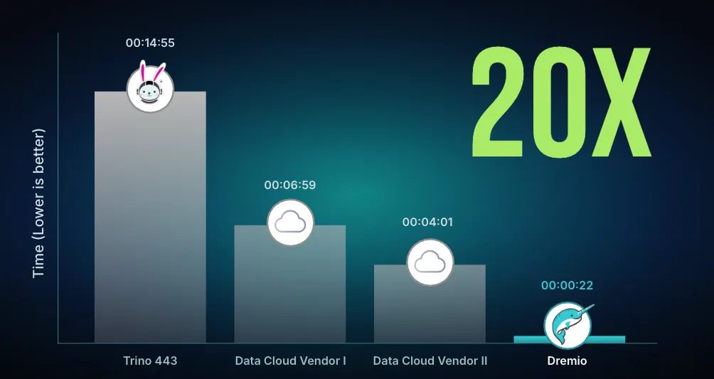 Powered by Apache Arrow, Dremio delivers 20x faster performance than cloud data warehouses with optimal cost-efficiency.