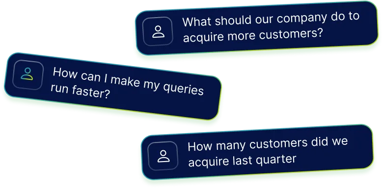 Ask questions in natural language and get instant answers. Dremio’s AI Agent understands your semantic layer and returns exactly what you need.