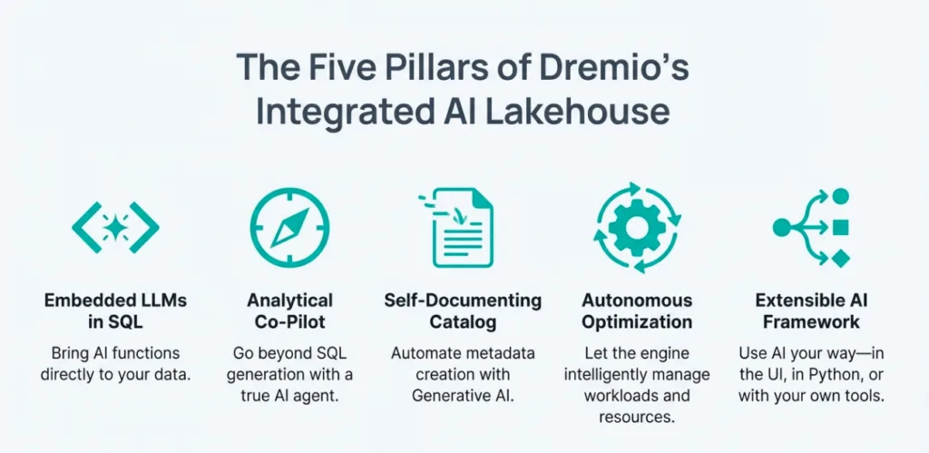 Dremio's approach reveals a clear vision for the future of the data stack: AI is not a bolt-on feature but a foundational capability woven throughout the entire data lakehouse platform. By focusing on practical applications that automate tedious tasks, simplify complex interactions, and optimize performance autonomously, Dremio is demonstrating how integrated AI can solve real-world problems for data teams.