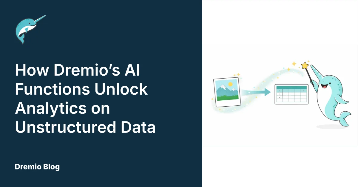 Dremio's AI functions (AI_GENERATE, AI_CLASSIFY, AI_COMPLETE) allow users to analyze unstructured data directly within SQL, eliminating the need for separate pipelines.