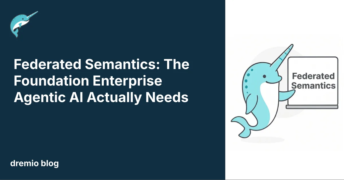 The AI Semantic Layer is where federated semantics lives in Dremio. Virtual datasets encode consistent business logic. Wikis and labels attach context to every table and column across every connected source. AI-generated metadata means the catalog becomes self-documenting over time, reducing the overhead of maintaining semantic coverage at scale. The result is a system where the AI reads business-ready data with business-meaningful context, whether that data is in an Iceberg table Dremio manages or a live query against a Salesforce object.