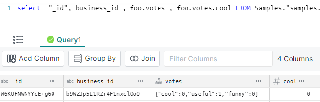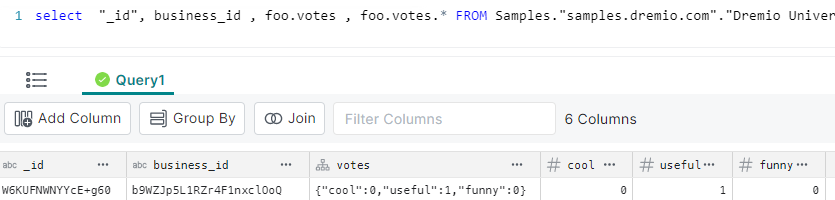 Note that the “votes” column is a struct (as denoted by the icon)