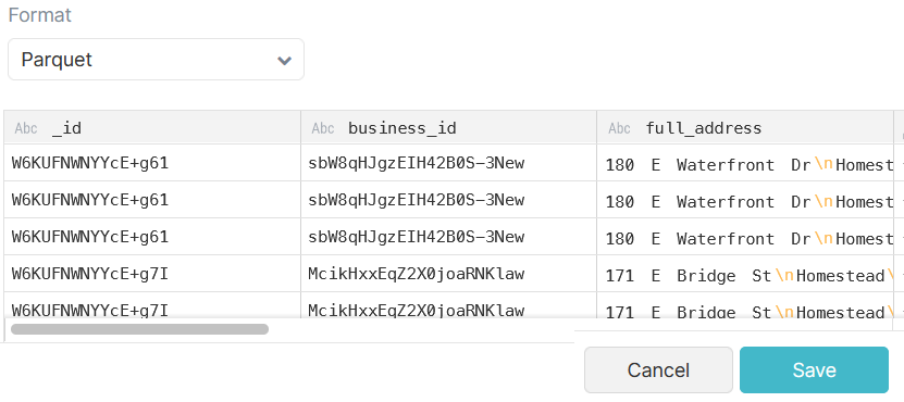 Click “Save” to promote the Restaurant Reviews parquet file as a PDS (Promoted Data Set).