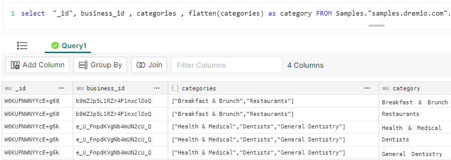 To fully flatten and expand our sample dataset, run this query: