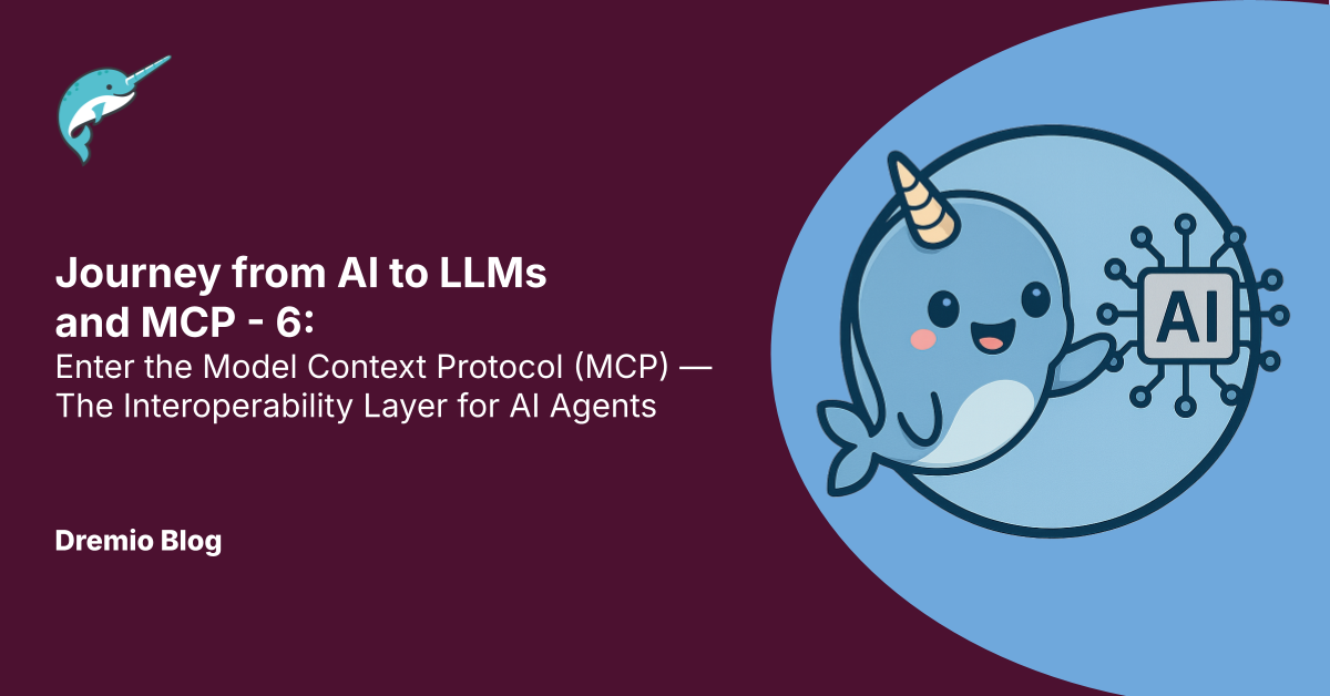 Just as Iceberg REST made it possible for Dremio to talk to a table created in Snowflake, MCP allows a tool exposed in Python on your laptop to be used by an LLM in Claude Desktop, a VS Code agent, or even a web-based chatbot.