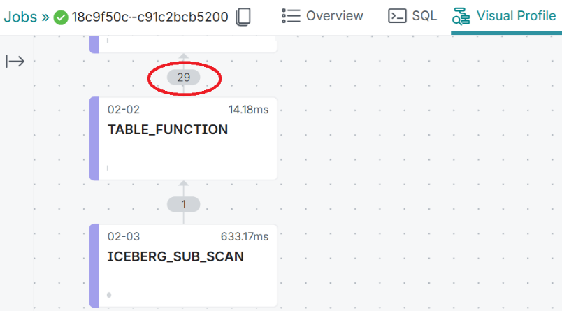 - Here we can see that Dremio will scan all 29 data files (where the actual data resides).