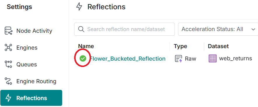 Note that the query has not been accelerated with a Reflection (i.e. the Job has not been flagged with the purple lightning-bolt icon .)