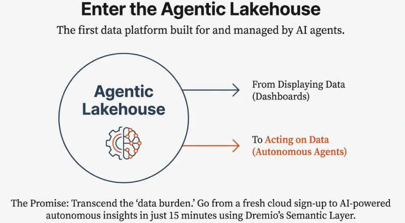 The solution isn't just better dashboards; it’s the Agentic Lakehouse. As defined by Dremio, this is the first data platform built for and managed by AI agents. It unifies data access and delivers autonomous performance, creating an environment where AI not only displays data but also acts upon it. Today, I’ll show you how to transcend the "data burden" and go from a fresh sign-up to AI-powered autonomous insights in just 15 minutes using Dremio’s Semantic Layer and SQL Engine.
